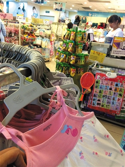 近日,国瑞购物中心内的一家母婴店里,一件粉红色的女童吊带连衣裙上设计有绳带。