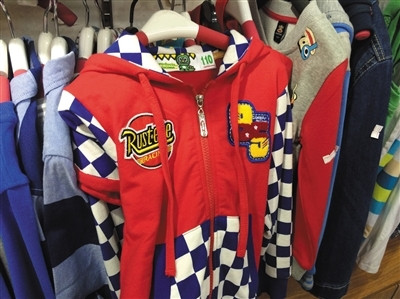 近日,朝阳区劲松中街一服装市场,不少童装店内都有带绳连帽衫出售。