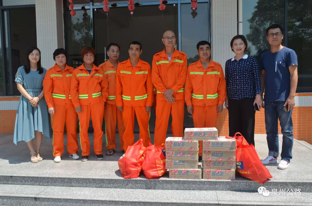 近日,泉州市公路局工会主席林晓红一行到南安分局码头、高来格、金淘、梅九、古山等5个公路站慰问坚守在高温一线的公路养护职工,为他们送上菊花茶、绿豆、正气水等防暑降温用品。